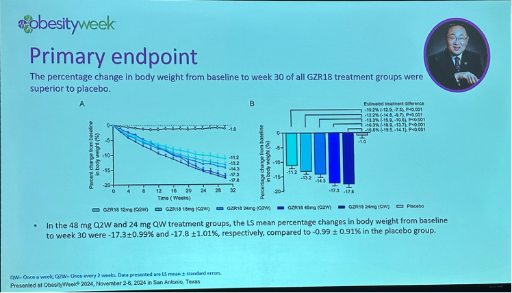 Novel GLP-1 RA GZR18 confers over 17% weight loss in phase 2b trial in Chinese people with obesity or overweight