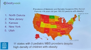 - Provider reluctance remains a notable barrier to greater adoption of MBS in pediatric care. Indeed, a recent study in the Journal of Surgical Research study revealed a significant mismatch between states with the highest prevalence of pediatric obesity and the those with MBS surgeons willing to accept pediatric patients. Alarmingly, Dr. Griggs said that, based on the American Society for Metabolic and Bariatric Surgery member registry, 11 states have do not have any MBS surgeons willing to treat pediatric patients, though she acknowledged that the registry may not be a completely accurate proxy. On using GLP-1 RA therapy as “adjunctive therapy” for those undergoing surgery, Dr. Griggs called for more research on this front and we wonder if long-term research on the ROI would be particularly helpful. Short-term, while surgery and GLP-1 may sound very expensive, long-term, the optimal way to approach those who do elect surgery may well be to use combination approaches. As usual, knowing in whom to use combination approaches is the question of the day - we look forward to more intelligence on this front at this meeting.